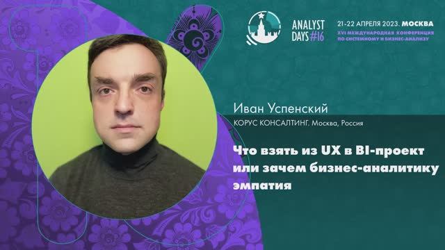 Analyst Days 16 — Иван Успенский, Что взять из UX в BI-проект или зачем бизнес-аналитику эмпатия