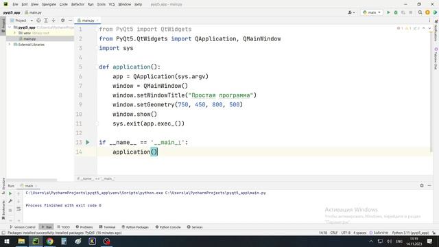 Пример программы на PyQt5