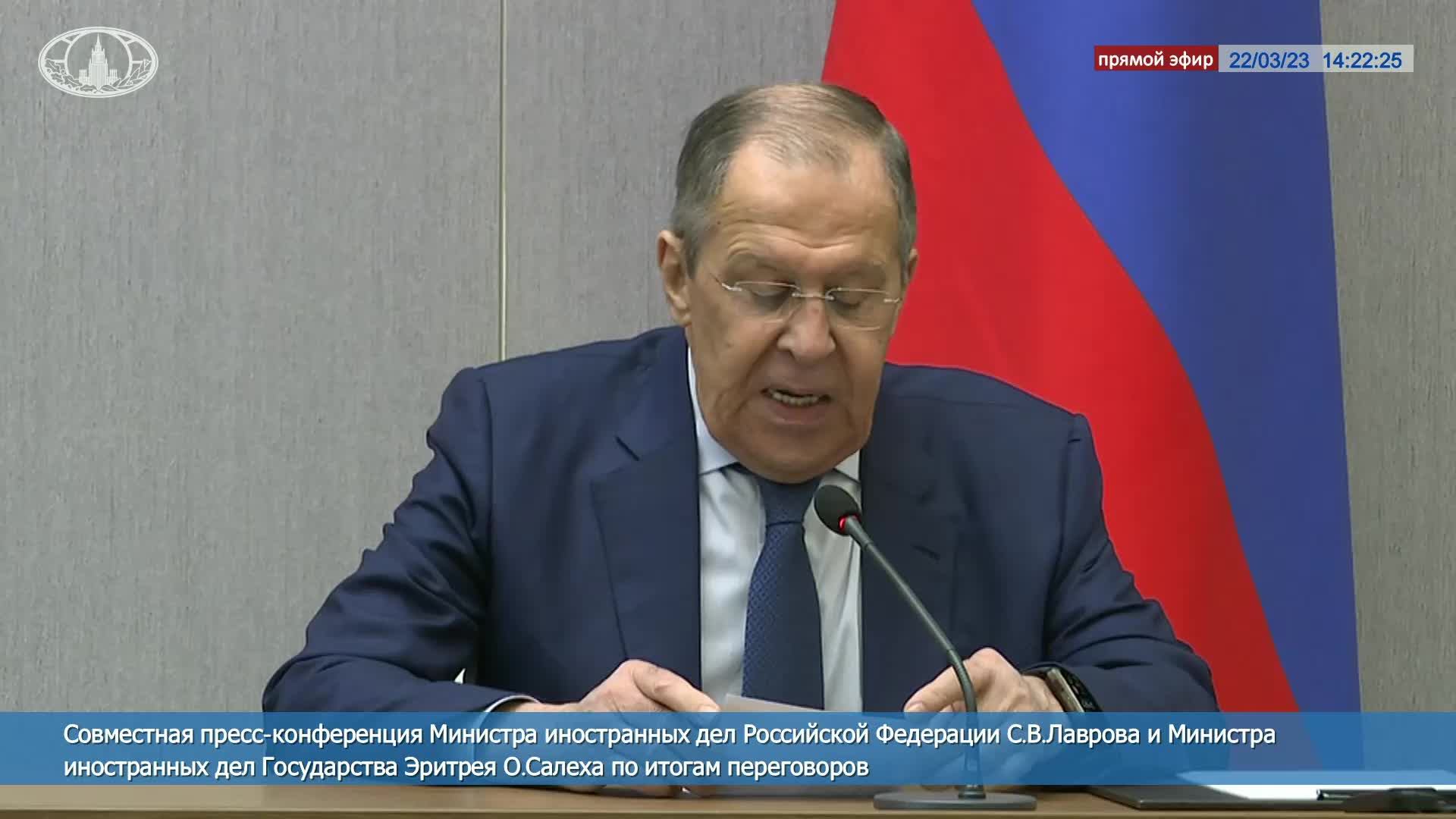 ? #ПрямойЭфир: Совместная пресс-конференция С.В.Лаврова и Министра иностранных дел Эритреи О.Салеха