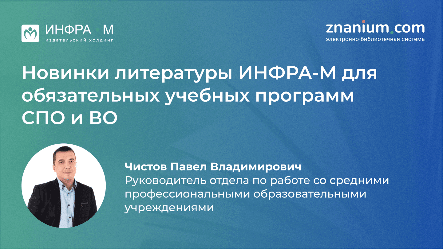 Вебинар «Новинки ИНФРА-М для учебных программ СПО общеобразовательного и профессионального циклов»