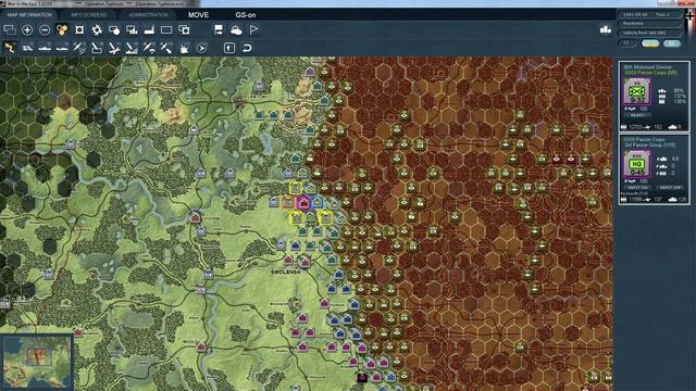 Let's try out War in the East by Gary Grigsby in the first Scenario - Operation Typhoon. We have just a few turns to advance on Moscow before winter hits...