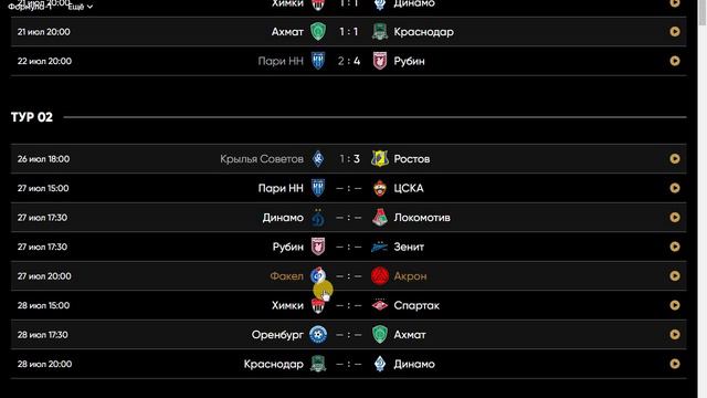Прогноз на игры 2 тура РПЛ