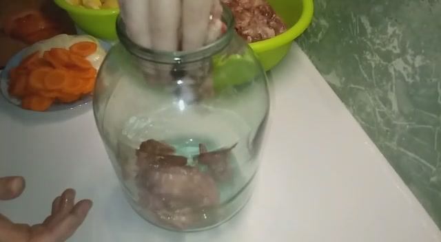 Курица тушеная с овощами в банке. Получается необычный вкус сочного мяса с нежнейшими овощами. Обязательно приготовьте для разнообразия,я уверена вашей семье придется по вкусу такой способ приготовления курицы. ***************** ?Маленькая просьба? Напишите в комментариях что то доброе или оставьте любой смайлик Для меня это ОЧЕНЬ важно! Я хочу видеть людей которым нравится то что я готовлю? ******************* 1 целая тушка курицы 1 большая морковь 2 средние луковицы 1 свежий помидор Лавровый лист 10 шт средних картофелин Соль,перец,смесь перцев по вкусу Курицу порционно порезала и замариновала в соли,перце и смеси перцев. Лук и морковь порезала кольцами. Помидор полукольцами. Картофель кружочками. !!!Важно!!! Воду и масло добавлять Не надо!!! Банку с курицей ставить на решетку или противень в духовке!! Только когда поставите банку в духовку включаете нагрев,духовка должна быть холодной!! В банку выкладываю все слоями: Курица Морковь Лук Помидор Картофель Чередую 2 раза,на последний слой кладу лавровый лист. Ставлю в холодную духовку и включаю 200 гр на 1,5 часа Приятного аппетита!! #курица #вбанке #курицавбанке #филоненкооксана #блюдаизкурицы #курятина #изкурицы #блюдаизкуриногомяса