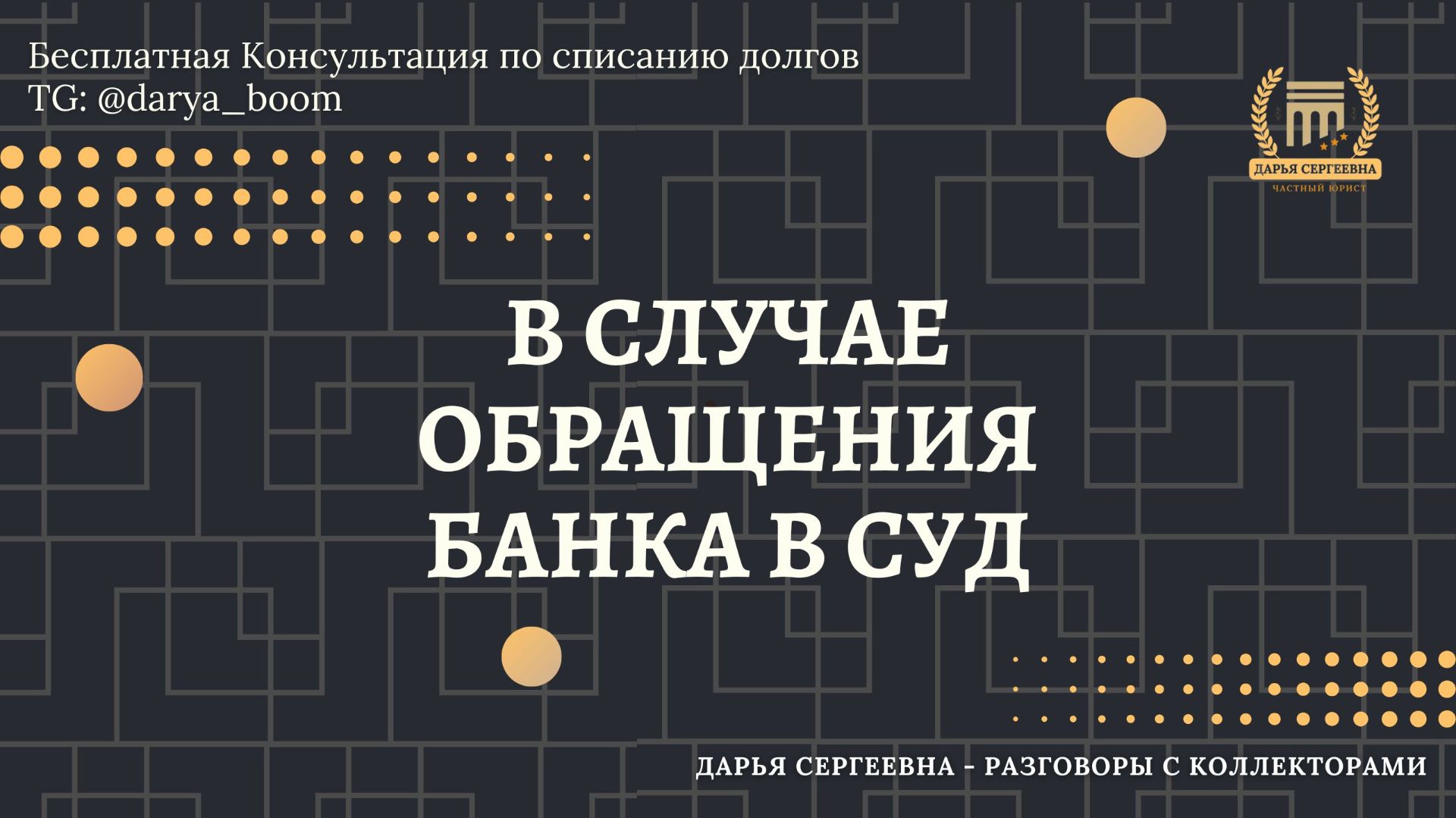От должника к кандидату Юридических Наук #ДарьяСергеевна #кредитныйюрист #каксписатьдолги 👉 Законно избавлю от долгов по кредитам и займам 👉 Индивидуалный подход к каждому 👉 Гибкий график оплаты 👉 Система скидок и акций на услуги 👉 Три тарифа на Юридическое Сопровождение Результаты работы со мной: - Отключены звонки вашим родственникам, друзьям, на работу и самому заёмщику. - Отменены судебные приказы и надписи нотариуса (при наличии). - Защищён официальный доход и имущество от взыскания судебными приставами. - Снижен размер долга перед кредиторами (при наличии законных оснований). - Получен отказ в исковых требованиях кредиторов. _________________________________ ▫️УЗНАЙТЕ, КАК СПИСАТЬ ДОЛГИ▫️ ⦿ Сайт: https://urblog.online ⦿ Группа ВК: https://vk.com/urblog.online ⦿ МАХ по номеру 👉 +79034094004 ⦿ Канал в МАХ: https://max.ru/boom_movies ⦿ BIP по номер 👉 +79034094004 или по ссылке https://bip.me/79034094004 ⦿ Telegram: https://t.me/darya_boom ⦿ ВКонтакте: https://vk.com/boomprava ⦿ ВАШ ЮРИСТ ⚖️: https://t.me/urblog_online ⦿ Эл.Почта: boomprava@gmail.com ⦿ Рутуб: https://rutube.ru/channel/40142931/ ⦿ Ютуб: https://youtube.com/@urblog.online?si=qbhtFhpAqU2XEzUC Добро пожаловать 🤝 Всех обнимаю 🤗 ✤ МАГАЗИН ЦИФРОВЫХ ТОВАРОВ ✤ 👉 https://urblog.online _________________________________ ✤ ЮРИДИЧЕСКИЕ УСЛУГИ ✤ ▸ Юридическое сопровождение проблемной задолженности Подробное описание каждого тарифа 👉 https://urblog.online ▸ Переадресация звонков коллекторов ▸ Возражения на иски ▸ Отмена судебного приказа ▸ Оспаривание исполнительной надписи нотариуса ▸ Апелляция и Кассация ▸ Возврат страховки по кредиту ▸ Исковые заявления по ЗоЗПП 👉 Заказать услугу через Телеграм: https://t.me/darya_boom _________________________________ #бесплатнаяконсультацияюриста #разговорысколлекторами #смешныемоменты #юристонлайн #коллекторызвонят #какобщатьсясколлекторами #антиколлектор #хорошийюрист #каксписатьдолги #какснятьарестскарт