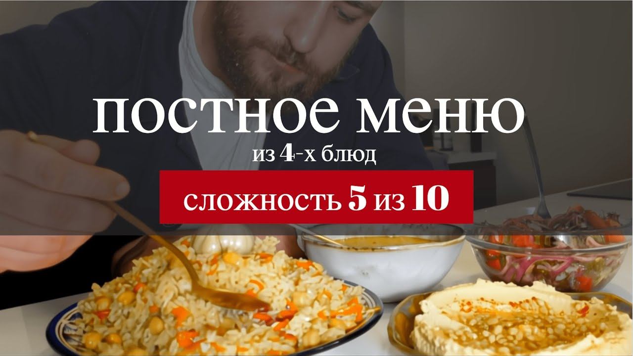 Постное меню из 4-х блюд: Хумус, Салат Ачик Чучук, Суп из чечевицы и Плов с нутом. Все постные блюда приготовлены без рыбы, яиц, молока или мяса. Я так питаюсь с 2016 года и ПРЕКРАСНО СЕБЯ ЧУВСТВУЮ. И вам того же желаю. Ежегодно во время Великого Поста на мой канал приходят тысячи новых зрителей в поисках вкусной еды без продуктов животного происхождения. И многие из них остаются со мной, наблюдая, какой вкусной и разнообразной может быть растительная пища. Я начинаю серию видео о том, какое меню возможно составлять для себя в течении дня. Для важно показать привычные, доступные и вкусные блюда, которые не отпугнут людей своей уникальностью и недоступностью ингредиентов. Первый выпуск уже на канале. Буду признателен вам за поддержку! По этим ссылкам вы сможете найти еще рецепты: Первые блюда | Супы : https://www.youtube.com/watch?v=oxVo-vO7FX8&list=PLeJHdZ-jAcuauAvMF_ZIPUsasBDnpcq_D Вторые блюда | Гарниры : https://www.youtube.com/watch?v=6OkOptnsuQ8&list=PLeJHdZ-jAcubt51BYqSHyC4s0ec3H_aSV Салаты : https://www.youtube.com/watch?v=A2ljRyJxh5k&list=PLeJHdZ-jAcuYNnUuFy8-mqeBPVl-DYehl Десерты : https://www.youtube.com/watch?v=C3pYS3imkGI&list=PLeJHdZ-jAcuZ2hEZaGAp6iSTmVwnl73jc Закуски : https://www.youtube.com/watch?v=60aQHhth8OQ&list=PLeJHdZ-jAcuZJOvhwIj-V8CngsinlwHqo Соусы : https://www.youtube.com/watch?v=zFQZ6QxmDz4&list=PLeJHdZ-jAcuYEgVBSUMksKvvYiQQUeKuo Выпечка : https://www.youtube.com/watch?v=_mmtbmFdYYs&list=PLeJHdZ-jAcubBFjLdxkSZTfuMC6Wq8hzv Напитки : https://www.youtube.com/watch?v=zoNe8xQhAao&list=PLeJHdZ-jAcuboPU6SrFcP0qz9hxnPYzWm Горячее : https://www.youtube.com/watch?v=nohuOmfl42Q&list=PLeJHdZ-jAcuYSjeCtjsPRDKtaEV5X8fu4 Холодное : https://www.youtube.com/watch?v=aieyLtQrlfY&list=PLeJHdZ-jAcubFcybr04uSH6lhvmdPNs6x Разносолы : https://www.youtube.com/watch?v=LYpCjfaLdyU&list=PLeJHdZ-jAcua4dXxoEPwu7YxlydsJ9Rvb Подписывайтесь: ➧ Instagram https://www.instagram.com/mikhailvegan/ ➧ Вконтакте https://vk.com/mikhailvegan ➧ Telegram https://t.me/mikhail_vegan ➧ Дзен https://dzen.ru/mikhailvegan #веган #рецепты #михаилвеган