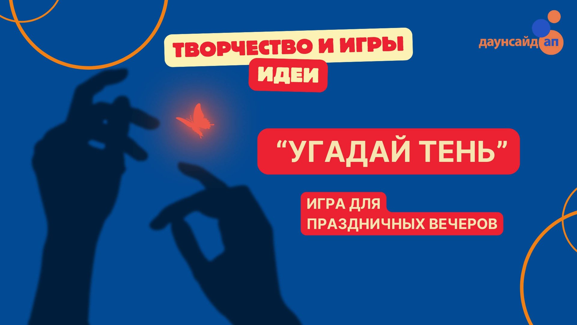 Соберите детей в круг в конце вечера, чтобы они утихомирились и замедлились после новогодней кутерьмы, отдохнули от экранов перед сном. Или позовите расшумевшихся детей в гостях сесть в кружочек и передохнуть за необычной игрой. Возьмите любые фигурки с елки, формы для печенья и т.д., детские игрушки и т.п. и спрячьте их. А фонарик есть у вас на телефоне. Привлеките внимание ребят и покажите им, какие тени получаются от предметов на потолке! Предложите ребятам угадать, чья это тень, а потом поиграйте с тенью, как это делает педагог Даунсайд Ап Юлия Понкратова на видео: тень становится то больше, то меньше, прыгает на ладошки, животик, ножки... Лови скорей! #игры #Даунсайдап #синдромДауна Благотворительный фонд «Даунсайд Ап» оказывает бесплатную психолого-педагогическую помощь семьям с детьми с синдромом Дауна. Больше информации — на сайте https://downsideup.org