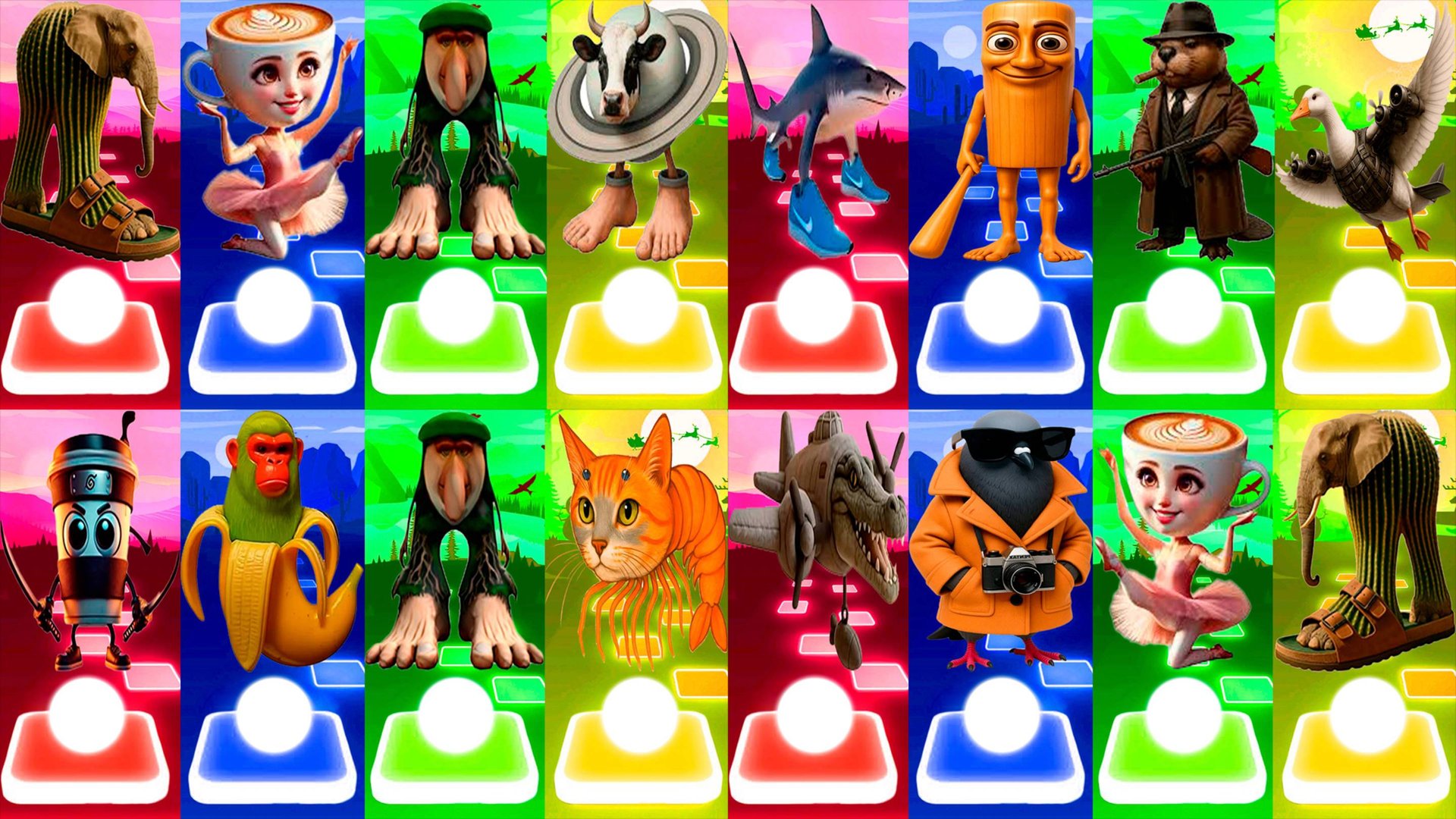 МЕГАМИКС ЛИРИЛИ ЛАРИЛА 🆚 БАЛЕРИНА КАПУЧИНО 🆚 ДРУГИЕ БРЕЙНРОТ МЕМЫ | Tiles Hop №1-4
