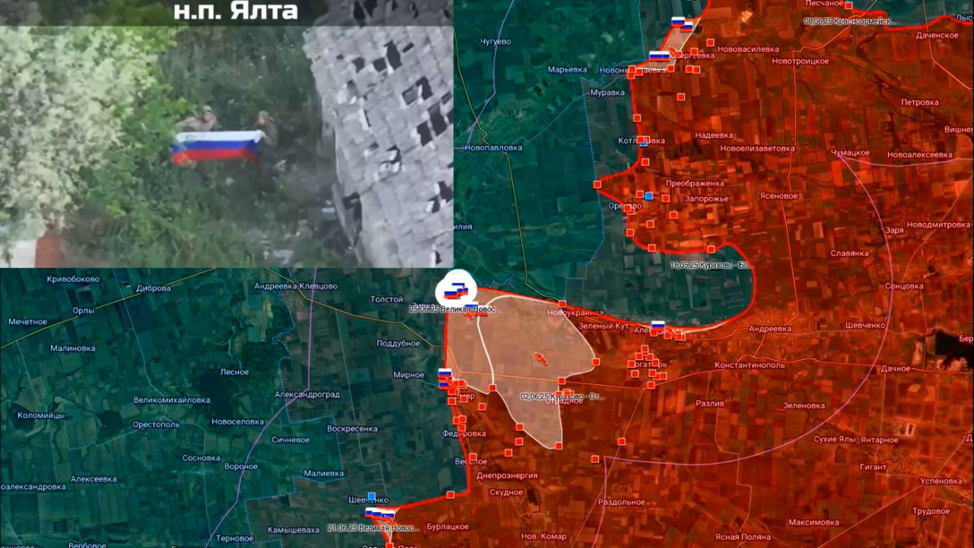 Карта боевых действий. Российские флаги в Ялте