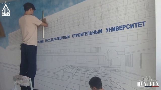 Своими руками 💪 студенты ИСАиЖКХ сделали невероятную роспись стены 🎨 в одной из аудиторий института! Это настоящее произведение искусства 🤩, выполненное в стиле графического эскиза 📐✏️. Эту красоту создали в честь важного события – присоединения ПГТУ к Московскому государственному строительному университету!