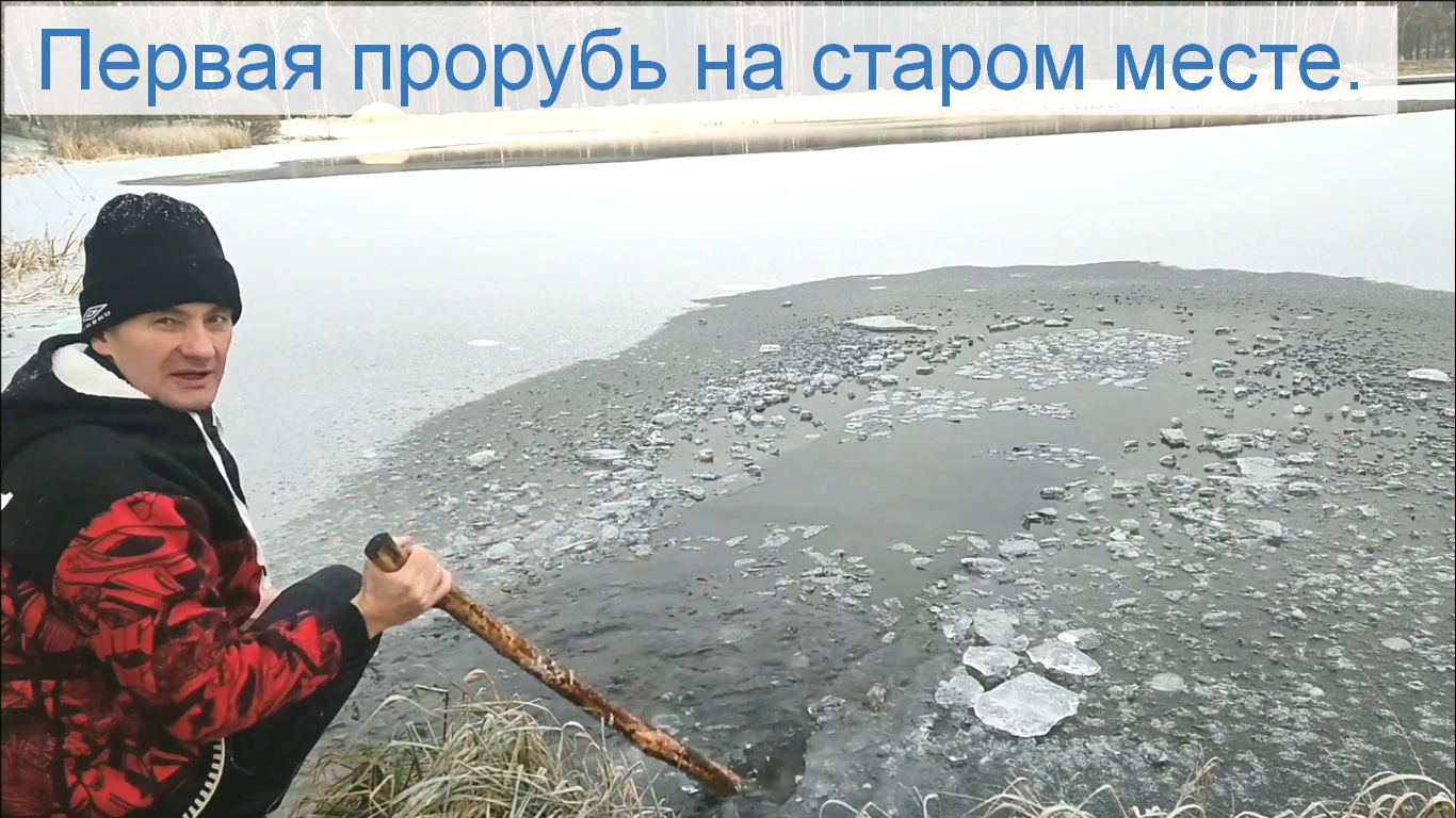 Первая прорубь на старом месте.
