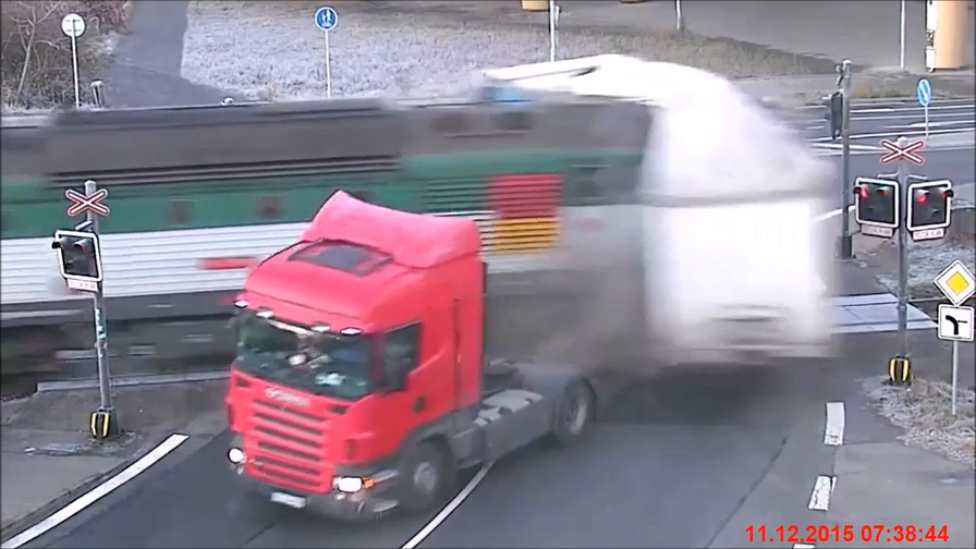 В Чехии при пересечении железнодорожного переезда 11 декабря 2015 года поезд сбил фуру. #дтп #жд #автомобиль #чехия #новости #события