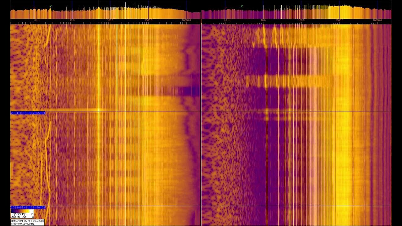 This video shows 2 spectra of signals recorded on a PC. The signal is taken from the inductive sensors presented at the beginning and end of the video. But the left sensor is connected to ground. Interesting signals at frequencies of 1-3 Hz, their changeable shape differs markedly from straight lines of 50 Hz and overlying harmonics. As well as other signals ~10, ~15, ~25, ~35 Hz and variable activity at fractions of a hertz. It is known from open sources that the range from 30 to 300 Hz is used for communication with strategic submarines. And the range is from 3 to 30 Hz for communication with underground objects and experimental studies. More frequencies up to 10 Hz belong to the geomagnetic background of the Earth... О ПРОИСХОЖДЕНИИ ЧАСТОТНОЙ МОДУЛЯЦИИ СЕРПЕНТИННОЙ ЭМИССИИ https://youtu.be/bwWHggY1IVU?si=xAX1diRKI9MxQJ88&t=1740 Previous monitoring is in playlists: EMF monitor https://youtube.com/playlist?list=PLiRg2YCbXcwn41BHqADKVBep_TgVq6XUN Очень Низкая Частота ~ Very Low Frequency https://youtube.com/playlist?list=PLiRg2YCbXcwnp5DxM4PnSs7k_Rnypaqek SIGNALS IN THE GROUND https://youtube.com/playlist?list=PLiRg2YCbXcwl6f3Bf5arHbGSOCNE5U71O поддержать канал: 8-999-654-93-44
