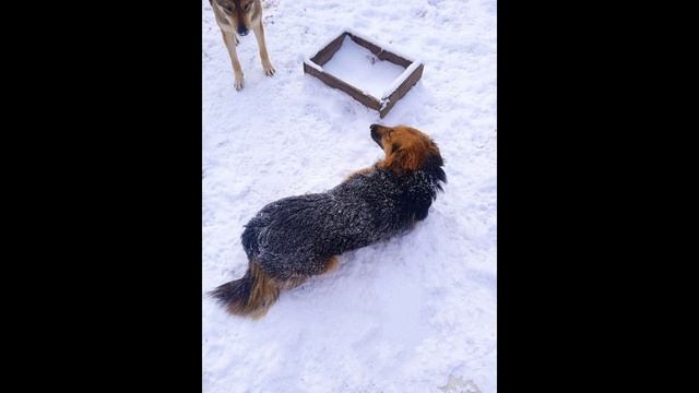 Настоящее зимнее настроение: наши собачки резвились как детки