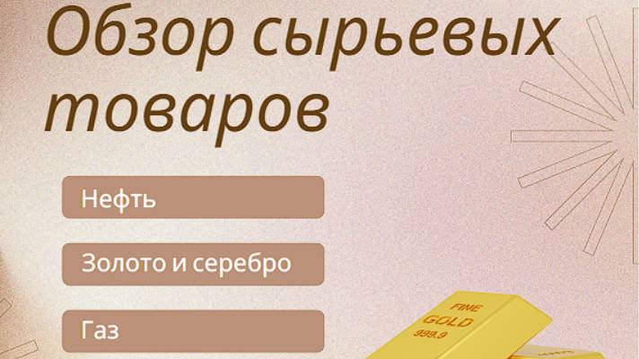 Тема – сырьевые товары: Нефть, Газ, золото и серебро.