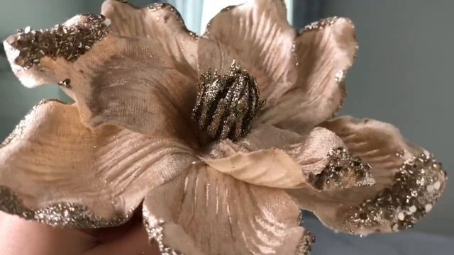 Искусственный цветок МАГНОЛИЯ 'ЗИМНИЕ ЧАРЫ' на клипсе, текстиль, шампань, 23 см, 13908-deluxe