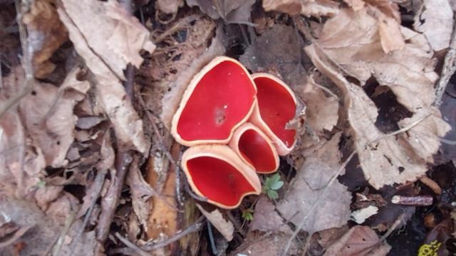 Первые весенние грибы в лесу. Саркосцифы.