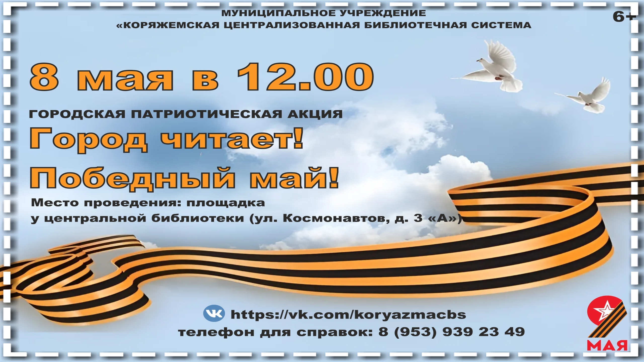 г.Коряжма | Городская патриотическая акция "Город читает! Победный май!" | 08.05.2024 год