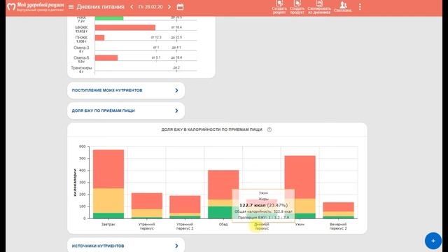 Запись на консультации по здоровому питанию: https://maria-safina.ru/konsultaciya-po-pitaniyu Комплексная услуга «Анализ рациона питания»: https://maria-safina.ru/konsultaciya-nutriciologa Комплексная услуга «Разбор составов продуктов вашего рациона»: https://maria-safina.ru/razbor-sostavov-produktov-vashego-raciona Комплексная услуга «Индивидуальное сопровождение»: https://maria-safina.ru/kompleksnaya-usluga-individualnoe-soprovozhdenie Проведение «Дней Здоровья» в организациях: http://maria-safina.ru/den-zdorovya Мои статьи о здоровом питании: https://maria-safina.ru/blog-o-zdorovom-pitanii-i-motivacii Почта для связи: mail@maria-safina.ru Дополнительный материал к видео - курс «Правильное питание для похудения и здоровья»: https://www.youtube.com/playlist?list=PL_qwRZuCVZIeH7imxSkpkXuLyDMUg_Fl7 Источники и дефициты витаминов: https://drive.google.com/file/d/1Tops2Q_CpG1XkpmaGiCqGQmEWReug74j/view?usp=sharing Источники нутриентов, добавленные жиры и сахара: https://drive.google.com/open?id=1G5AUqUsm6KETSK1hmxqzqknoJC0GXaWV Руководства по Здоровому Питанию: https://maria-safina.ru/moi-knigi РЕБЯТА, ПРИВЕТ! ;) Сегодня рассказываю об одном крутом инструменте, который поможет вам самим проанализировать свое питание на дисбалансы. Это программа анализа рациона health-diet.ru Как проанализировать свой рацион на дисбалансы? Я сама пользуюсь данной программой для себя и клиентов. Эта статья - рекомендация хорошего продукта от чистого сердца для вас! Чтобы вы уже сейчас начали строить свой здоровый рацион. И отлично будет, если вы начнете с понимания того, по каким макро- и микронутриентам вы недобираете/перебираете. Ведь с этого и начинается работа над коррекцией рациона в соответствии с вашем целью. Расскажу пошагово ваши действия в программе: 1. Заходите на сайт health-diet.ru, регистрируетесь и оплачиваете использование. Да, сайт платный, полгода стоит 440 рублей. Это 73 рубля в месяц. За эту цену вам будут доступны: - баланс КБЖУ; - количество витаминов и из каких продуктов вы их набираете; - количество минералов и из каких продуктов вы их набираете; - омега-3, омега-6, клетчатка, соотношение омега:3: омега:6, из каких продуктов набираете; - насыщенные жиры, из каких продуктов набираете; - и другие крутые показатели в своем питании. Роскошная цена за такие возможности. ;) Плюс, вы можете вести не только свой баланс, но и еще 4-х человек в одном аккаунте. То есть, можно следить за здоровым питанием всей семьи. Также в программе можно вести дневник тренировок. 2. Вводите свои данные в программу, и она рассчитывает ваши КБЖУ. Можно посчитать самому по любой из удобных для вас формул и внести свои цифры. Я пользуюсь формулой Харриса-Бенедикта и вношу свои значения макронутриентов и калорийности. В данном примере взяла предлагаемые программой значения КБЖУ. Вы можете посмотреть, сколько калорий, макро- и микронутриентов вам нужно набирать для поддержания веса в норме при вашем образе жизни и вашей физической активности. А также для похудения или набора массы. 3. Чтобы узнать, а что же прои