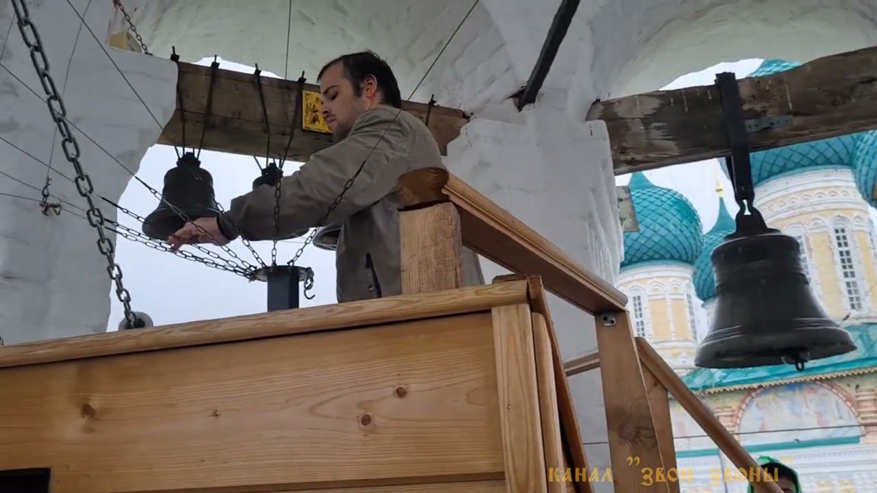 В Воскресенском соборе Тутаева (старое название города Романов - Борисоглебск, по двум сторонам Волги) пребывают святыни, гораздо более древние, чем сам храм. Одной из них, пожалуй, самой любимой и почитаемой, является чудотворный образ Всемилостивого Спаса. Этот образ был, по преданию, написан преподобным Дионисием Глушицким в начале XV века. Изначально икона располагалась в куполе (являлась "небом") деревянного храма в честь святых князей Бориса и Глеба, чем и объясняются ее большие размеры (три метра в высоту). Когда был построен каменный храм, икону Спасителя перенесли в летнюю Воскресенскую церковь. В 1749 году по указу святителя Арсения (Мацеевича) образ был вывезен в Ростов Великий. 44 года пребывала икона в Архиерейском доме, только в 1793 году борисоглебцам позволили вернуть ее в собор. С великой радостью они несли святыню из Ростова на руках и перед слободой остановились на речке Ковать, чтобы омыть дорожную пыль. Там, где поставили икону, забил ключ чистой родниковой воды, который существует и по сей день и почитается святым и целебным. С той поры у святого образа стали совершаться чудеса исцеления от физических и духовных болезней. На средства благодарных прихожан и паломников в 1850-м году икону украсили серебряно-золоченым венцом и ризой, изъятыми большевиками в 1923 году. Тот венец, что находится на иконе в настоящее время - его копия. По древней традиции под образом Спаса принято проползать на коленях через специально устроенный лаз. Ежегодно, в связи с переходом богослужений, весной икона переносится в летний храм, осенью - в зимний. Традиционно с образом Спаса проходят городские крестные ходы. По Борисоглебской (правой) стороне - в десятое воскресенье по Пасхе (престольный праздник Воскресенского собора). По Романовской - в воскресенье перед праздником пророка Илии (2 августа). Большой крестный ход по Романовской стороне был учрежден 1888 году в связи с 900-летием крещения Руси. Свое название «Большой» он получил в связи с тем, что образ Спасителя проносят от Воскресенского собора, пересекая Волгу, ко всем храмам левобережной стороны. Звонарь Кирилл Костыренко, колокольный звон в размере 6/8 в Воскресенском соборе Тутаева, фестиваль «Перед Спасом» 29.07.2023 накануне крестного хода с иконой Спаса Всемилостивого #колокольныйзвон #звонзвоны #Тутаев #ВоскресенскийсоборТутаев #передспасом #размер6/8