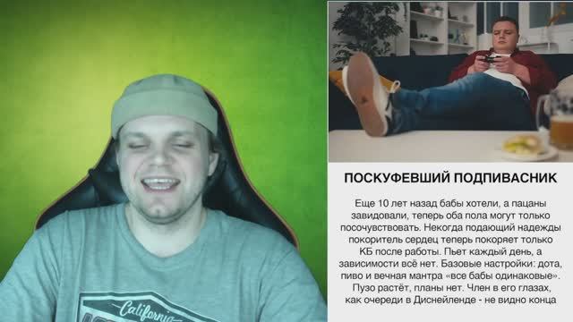 Читаю самые точные и смешные описания типов мужчин из интернета и пытаюсь сдержать эмоции! От "ЗОЖНИК" до "ТЕМЩИК" — смотрим, насколько точно интернет угадал все типажи. 😂 В этом видео: • Реакция на самые популярные мемы и описания типов парней • Комментарии к каждому типажу — насколько он узнаваем • Искренний смех над точными характеристиками • Наш ТОП-3 самых смешных и точных описаний Ставь лайк, если узнал себя или друзей в этих описаниях! Подписывайся на канал — будет еще больше смешных реакций и разборов. Пиши в комментариях, какой типаж описали точнее всего? Какой тип забыли добавить? #типымужчин #реакция #юмор #приколы #смешноевидео #типажи #парни #мемы #разбор #психология типы мужчин, реакция, юмор, приколы, смешное видео, типажи, парни, мемы, разбор, психология, смех, угар, мужчины, характеры, тесты, отношения, знакомства, типы парней, реакция на мемы, юмор 2024, рутуб, rutube