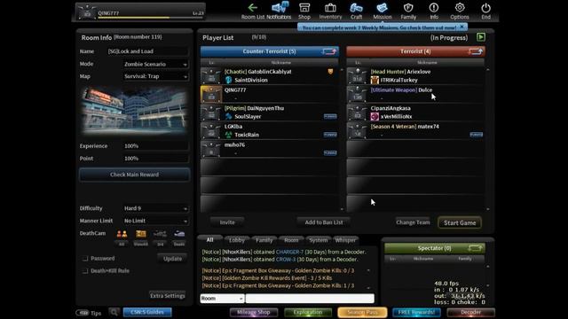 Finally, I completed this mission on 13 August 2020 and get AK-47 Paladin (+6) and 4 x AK-47 Paladin as a reward. I talk about so many things on this video about Golden Zombie and Zombie Scenario, Tips, Map and weapon. This is why this video duration is more than 1 hour and probably you will get bored bro :v but don't worry because I will upload cut version later (Team only and Solo only). ~Golden Zombie Kill Event 2020~ Reason to kill GZ: Hunting Golden Zombie is really boring, but as a CSNS Free player I think I must get the reward (Paladin has pretty good buff bro :v) but for other Free players to hunt GZ is your own decision but I recommend to hunt GZ, You can sell that Paladins at mileage auction with cheap price :v and for Paying Player it's up to you bro, you can get Paladin with decoders, believe me hunting GZ is boring :v ===== Short Hunting GZ Tips if you too lazy to read~ Farm GZ on "Trap - Season 1" any difficulties from Normal to Hard 9, GZ will randomly appear after 3 minutes you playing (after you are done first round) so GZ will spawn randomly at round 2,3,4,5 or sometimes GZ won't spawn at all, no need to quit and make a new room if you didn't find any GZ or you feel bored to wait, just do it like "I will survive the whole rounds and level up my H4 box". ===== Golden zombies randomly spawn at Normal to Hard 9 difficulty on Zombie Scenario Mode. Maximum 3 Golden Zombie Kill/day. Do it with your team or solo, but I recommend to do solo. Why solo? Because this event doesn't have any player requirements like min 4 or 8 players at 1 room. Rules: 1. GZ kills will count only when you finished the game! 2. Quitting and Disconnected will not count! Proof 21:21 - 24:29 3. Maximum 3 GZ kill/day. The kill limit will reset at midnight. 4. Any Maps on Zombie Scenario Mode. 5. Golden Zombie will appear 3 minutes after you play. 6. GZ only appear on Normal to Hard 9 difficulties. My tips for you based by my own investigation: MAP: Trap (season 1) *narrow map, no need struggle to find GZ positions when appeared. No Zombie Boss to fight (good for Free player like me :v), only need to survive until the end of round 5 (17 minutes). Difficulty: Normal - Hard 9 (depending on your weapons to survive) - Normal = do normal if you want to do solo, but you don't have proper guns to survive - Hard 6 and Hard 7 = I'm able to survive at these difficulties with "Broad Divine" that has vamp part tier 5 and health up part tier 3-5. - Hard 9 = only when you don't have a gun with vampiric part and you want H4 box, so join other player's room that has a gun with vamp part. *no matter what difficulties you play, it will not increase the spawn probability of golden zombie (it's still random bro :v) Weapon: Use any weapon that equipped with vamp part on primary (Broad Devine, Hearth Rod and SCAR OZ-D) and health up part on secondary and melee weapon. ===== Good and bad when do with team and solo~ Team: good for free players that doesn't have weapon that equipped with the vamp part and the bad thing is when GZ killed by other players before you hit the GZ (fail to kill GZ). Solo: no need to worry about another player, but doing solo it's boring. ====== RIP Grammar and RIP proper Pronunciation and broken sound qualities. my english is so poor :v OMG hahaha ===== ➡️➡️ HOW TO SUPPORT If you like what you see, please support my channel by subscribing, sharing and hitting that like button, thank you.