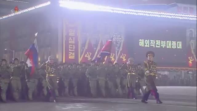 На параде в КНДР военные прошли с флагом России.