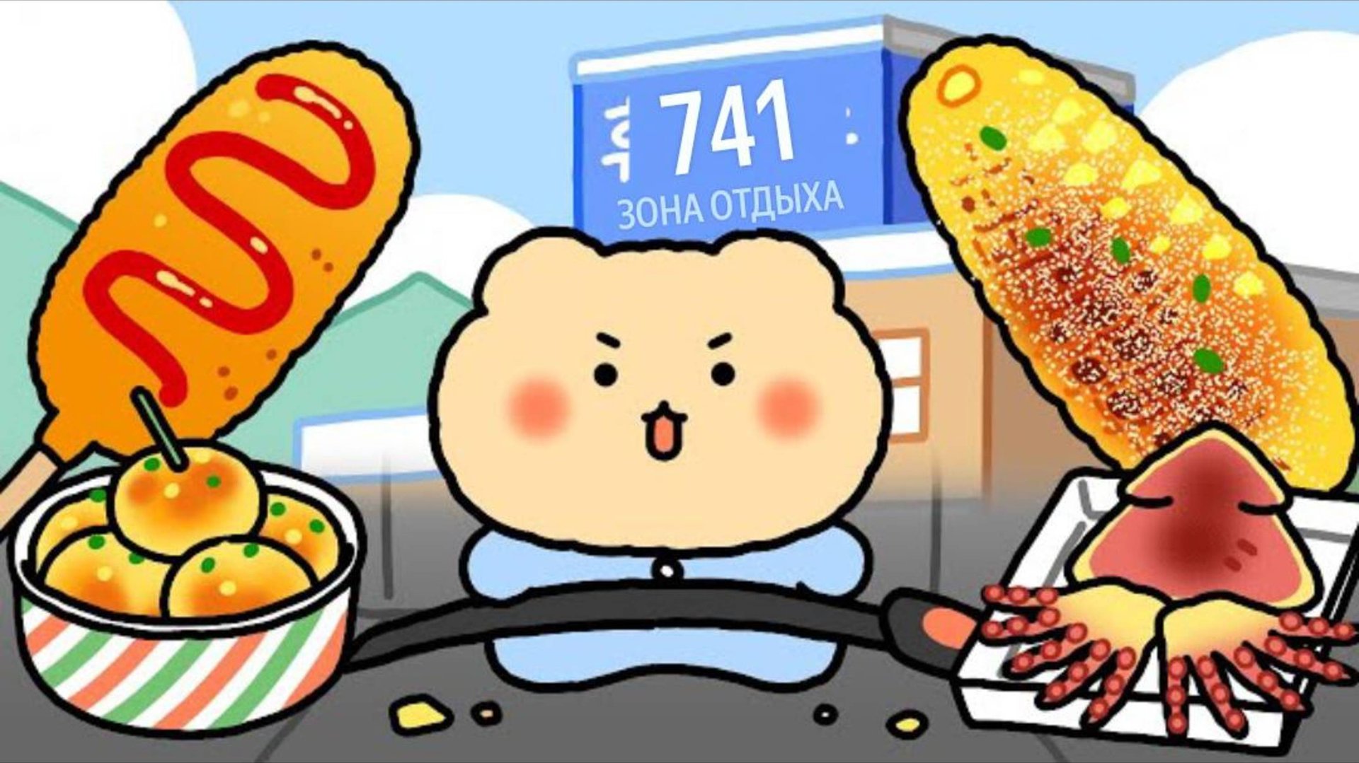 Остановка для отдыха в Мукбанге : Кукуруза, Картофель, Хот-дог и фаст-фуд