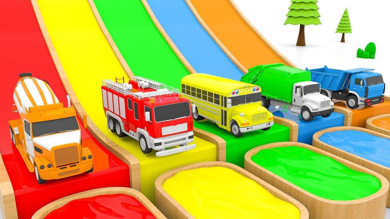 Изучаем цвета с помощью уличных машинок и водной горки для детей - Цвета для изучения детьми
