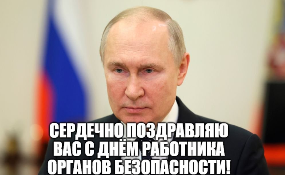 В.Путин: Уважаемые товарищи! Дорогие ветераны! Сердечно поздравляю вас с Днём работника органов безопасности! Подробнее: http://kremlin.ru/events/president/news/70146 #новости #россия #путин #праздник #поздравление #фсб #свр #фсо #безопасность #днр #лнр #херсонскаяобласть #запорожскаяобласть
