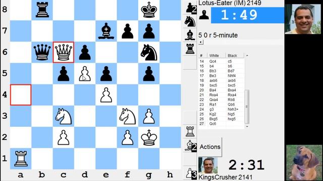 LIVE Blitz #2721 (Speed) Chess Game: White vs IM Lotus-Eater in Philidor: Improved Hanham variation