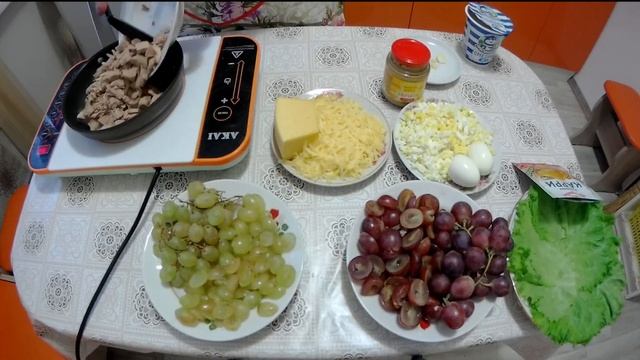 "Новогодний салат".Салат из птицы в сметанно-горчичном соусе с виноградом