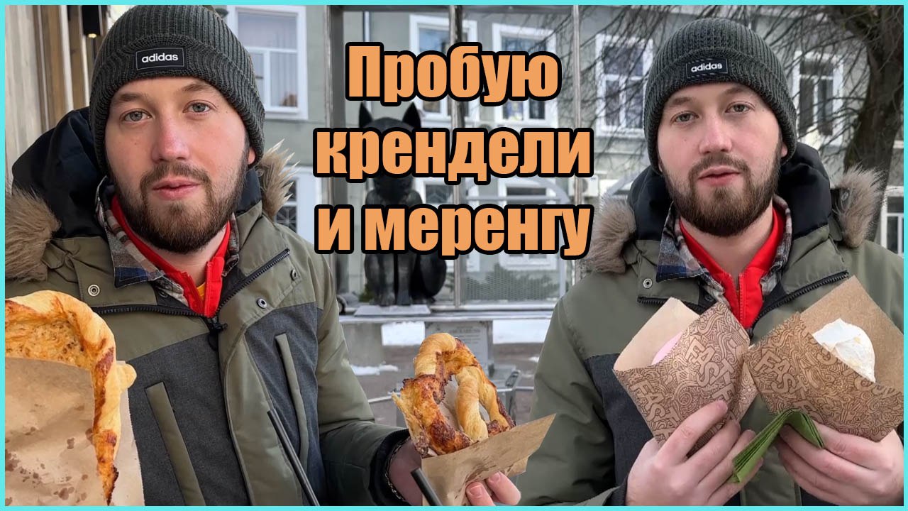 Привет всем! Сегодня я попробую крендели с сыром и меренгу с вишней и миндалем в Зеленоградске.