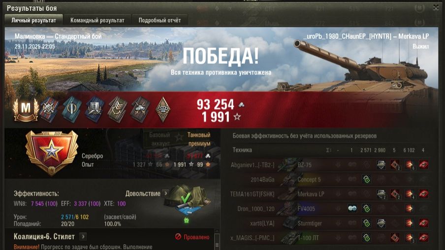 МАЛИНОВКА МАСТЕР на Merkava LP ОПЫТ: 1327 СУММАРНЫЙ УРОН: 8673 на ПОБЕДУ 31%