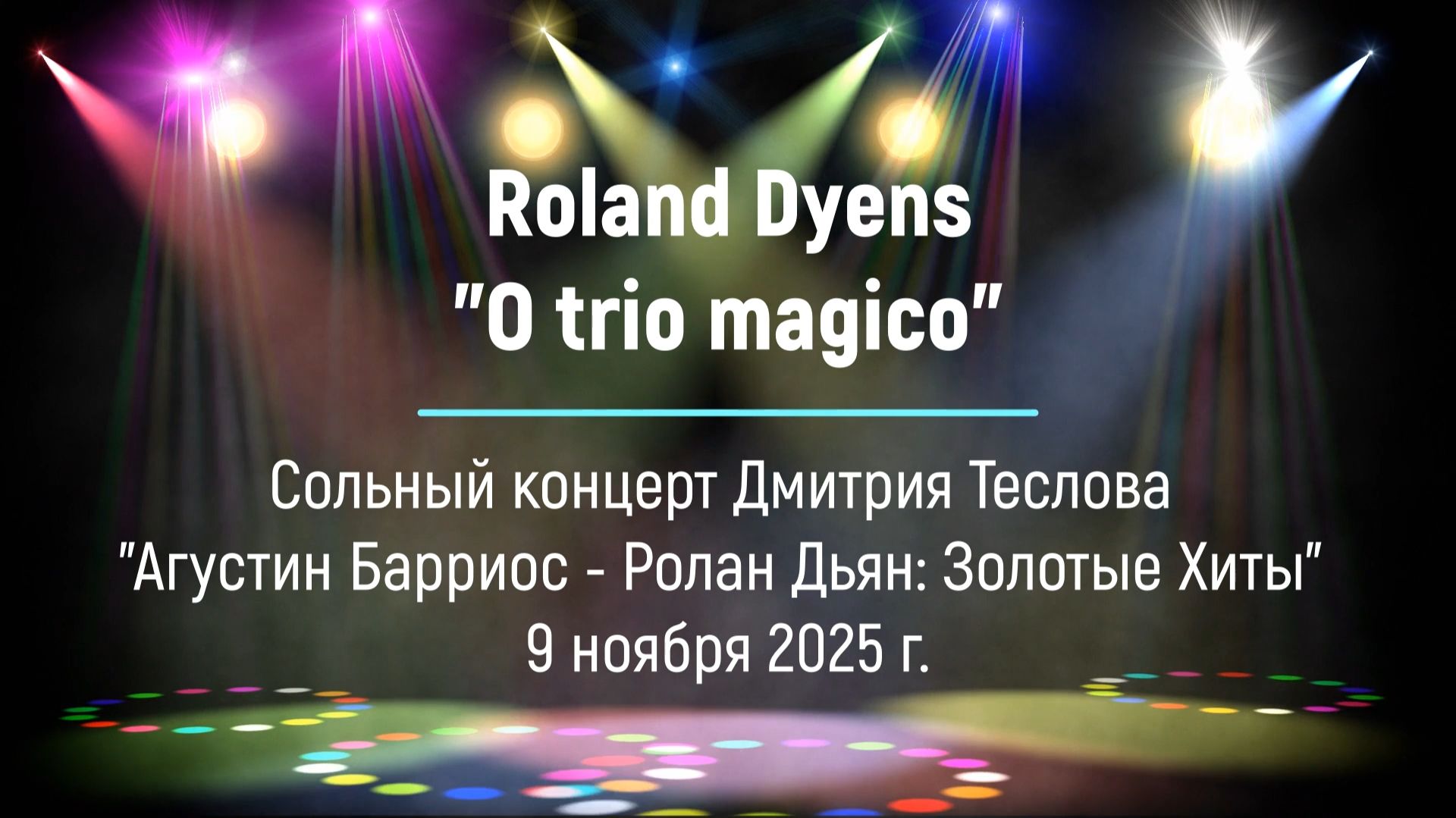 Roland Dyens. "O trio magico". Исполняют: Дмитрий Теслов, Кирилл Бетин, Андрей Дорохин. Композиция посвящена автором, как он пишет в нотном тексте, "Мастеру Пиксингинье". Альфредо да Роша Виана Фильо (4 мая 1897 г. — 17 февраля 1973 г.), более известный как "Пиксингинья" — бразильский композитор, аранжировщик, флейтист и саксофонист, родившийся в Рио-де-Жанейро. Он работал с бразильской популярной музыкой и создал шоро — жанр бразильской музыки, сочетающий афробразильские ритмы с европейскими влияниями. Сольный концерт Дмитрия Теслова "Агустин Барриос - Ролан Дьян Золотые Хиты" 9 ноября 2025 г. Скачать аудиоальбом Дмитрия Теслова "Anniversarium: Agustín Pío Barrios Mangoré & Roland Dyens. Golden Hits" 2025: https://teslov-music.ru/teslov-audio_anniversarium_barrios_dyens_2025.htm Все видео и аудио записи Дмитрия Теслова https://vkvideo.ru/@dmitryteslovofficial/all и https://teslov-music.ru/teslov-audio.htm Авторские сочинения для гитары https://teslov-music.ru/teslov-notes.htm