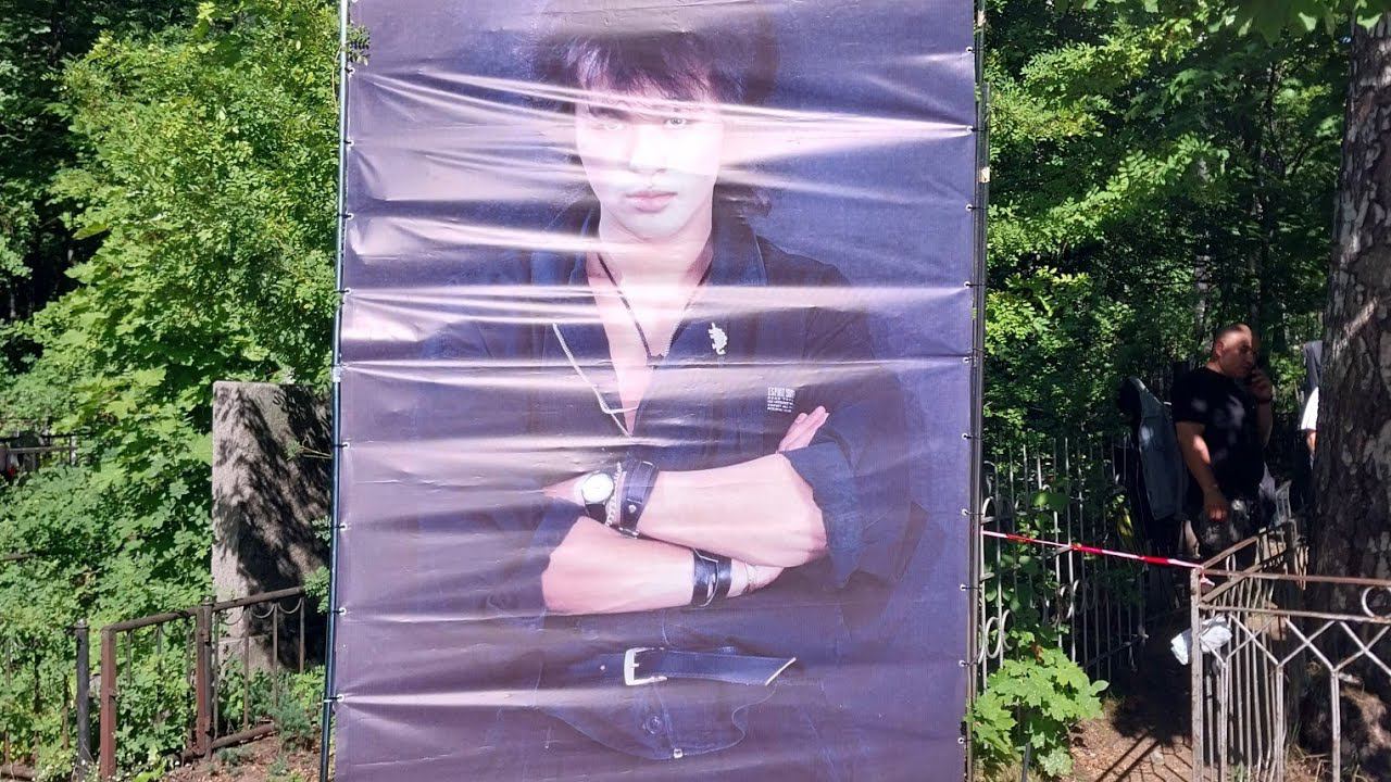 на кладбище к Виктору Цою в день памяти