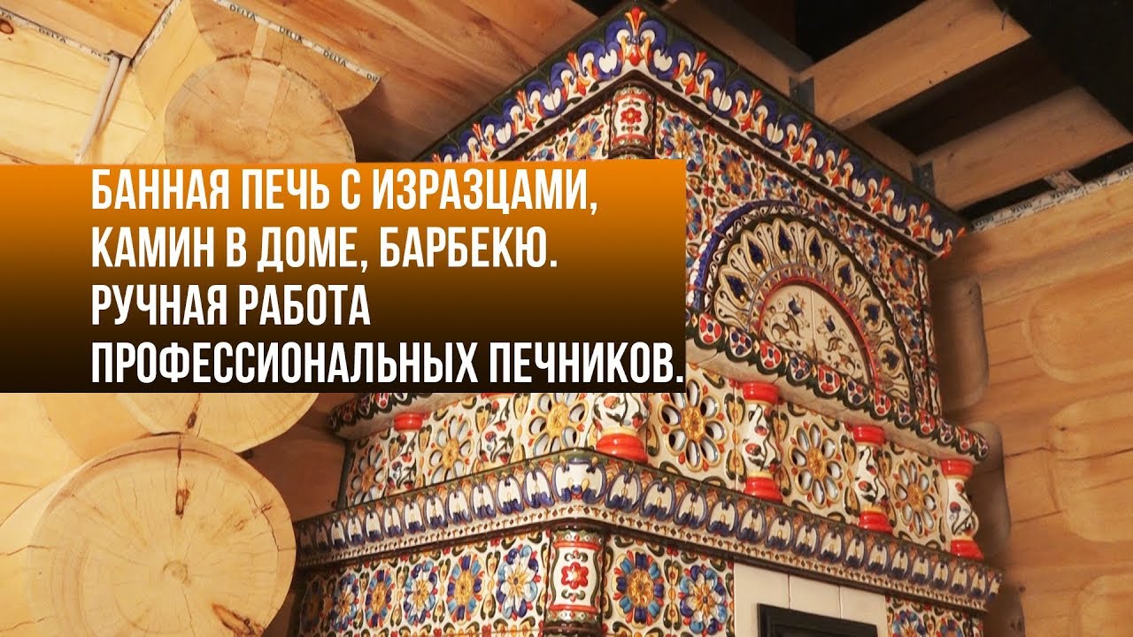 Банная печь с изразцами, камин в доме, барбекю.