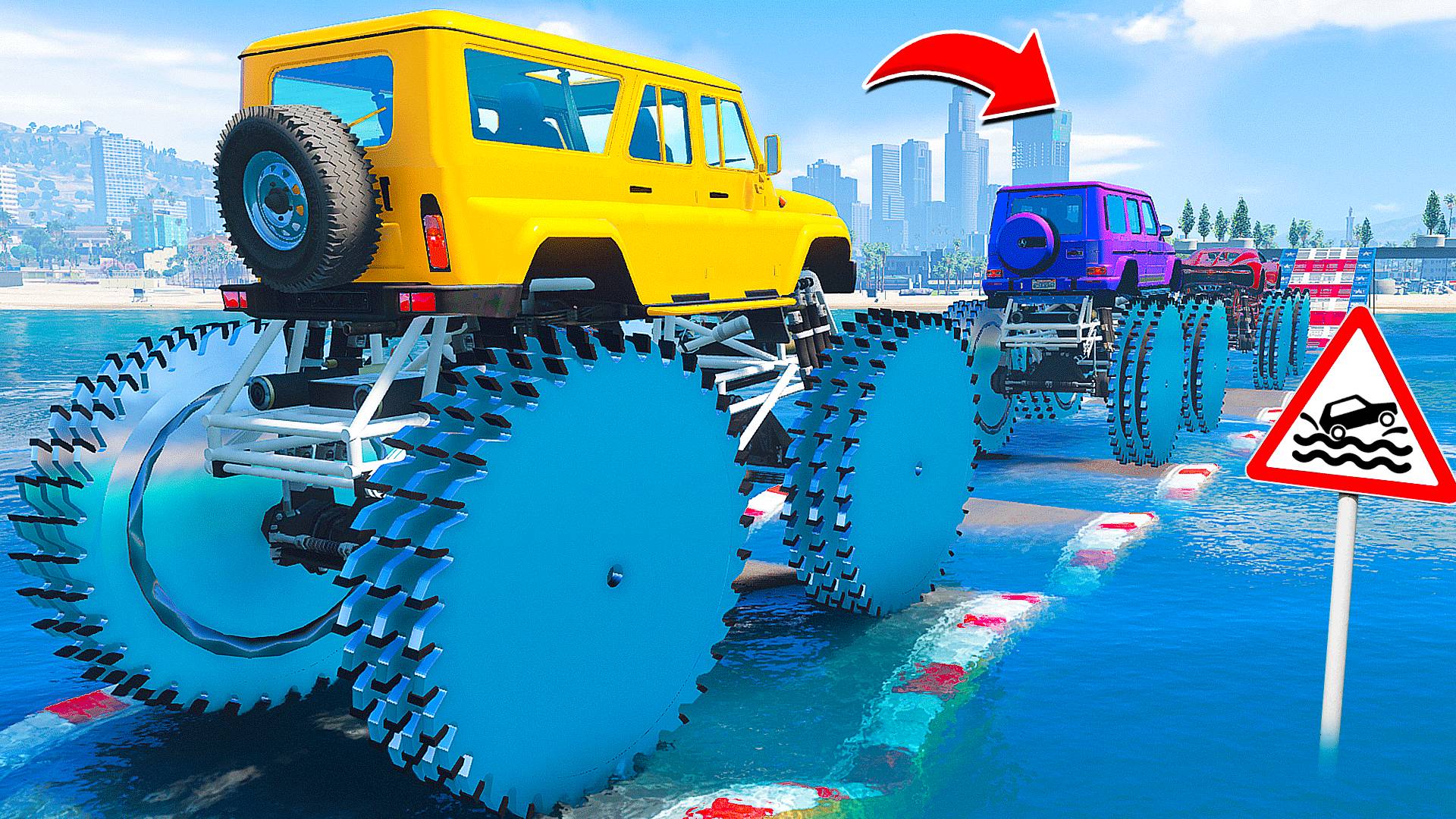 ПРОЕХАЛ ВОДНЫЕ КОЧКИ на ГИГАНТСКИХ МАШИНАХ в ГТА 5 МОДЫ - ЭКСПЕРИМЕНТЫ в GTA 5 MODS