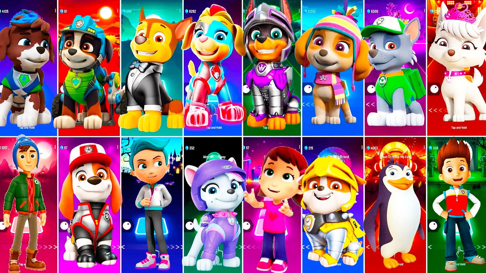 Мультики для Детей Щенячий Патруль Tiles Hop - ГОНЩИК, СКАЙ, РОККИ, СВИТТИ