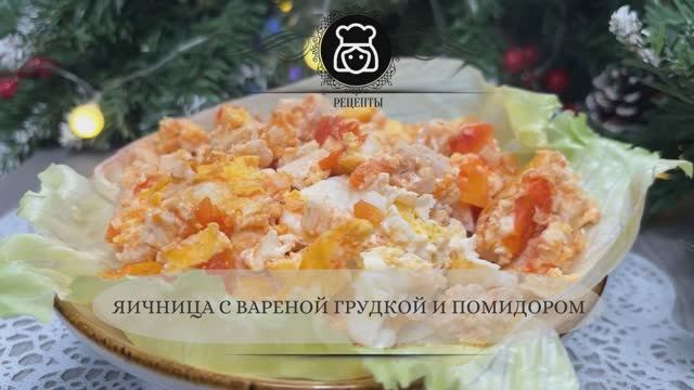 Яичница с вареной грудкой и помидором