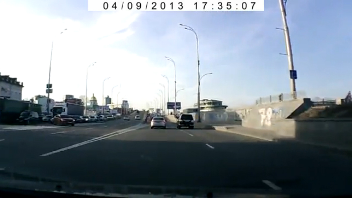 Киев - разворот Toyota Camry через сплошную перед ДТП