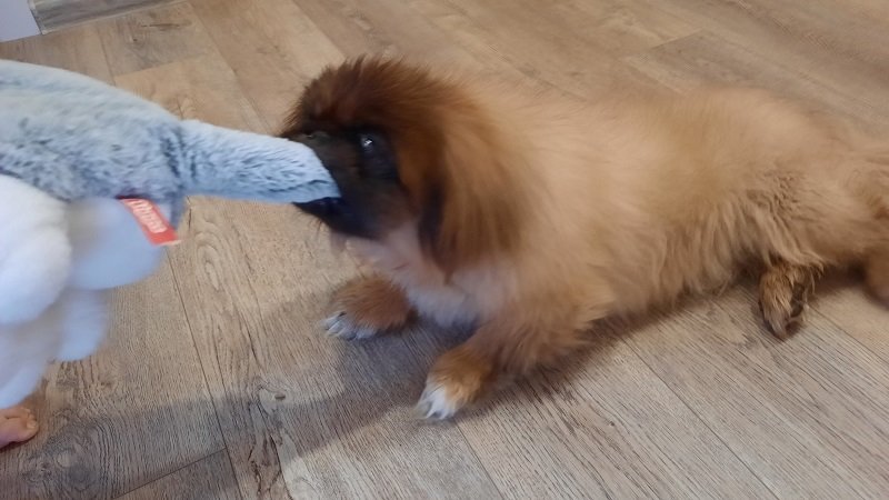В доме идут постоянные игры во всё что угодно. Вот сейчас пекинес пытается отжать игрушку у дочери. Смотрим ,чтобы особо не тянул, потому как старенький и зубкам может быть не очень хорошо. Но потихоньку можно )