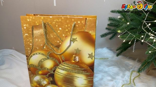 332732 Пакет подарочный Lanson goods в новогоднем стиле золотистый 32×26×10см