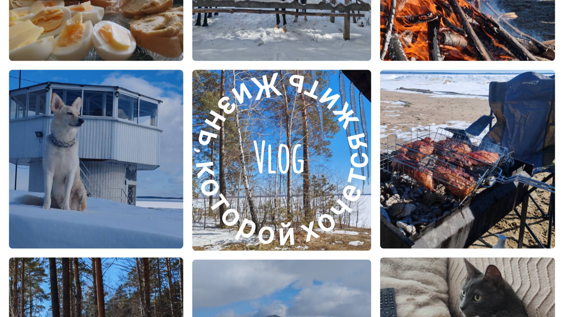 Внезапная Сибирская метель сменилась ярким солнцем, прогулка по берегу Оби и лесу, шашлыки, костёр