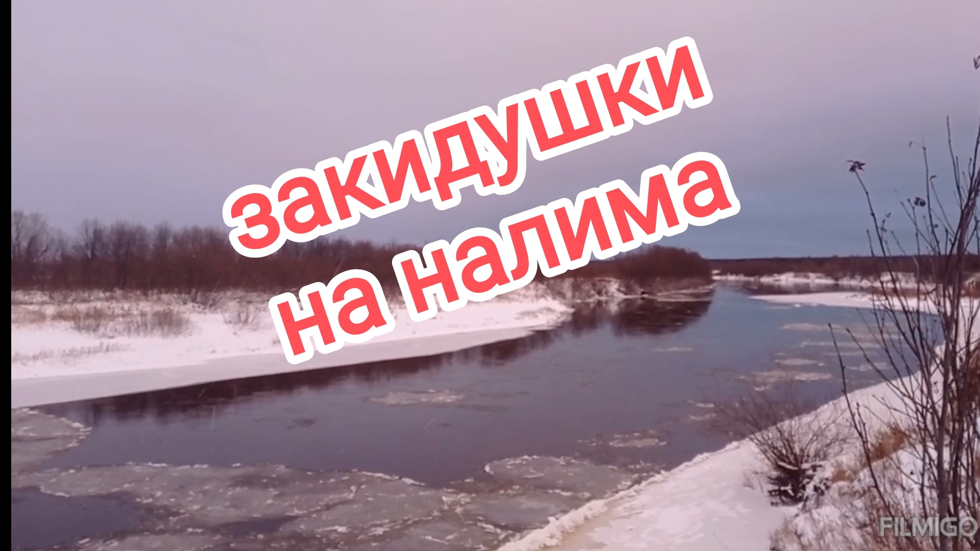 поставил на ночь закидушки на налима. Шуга идёт.