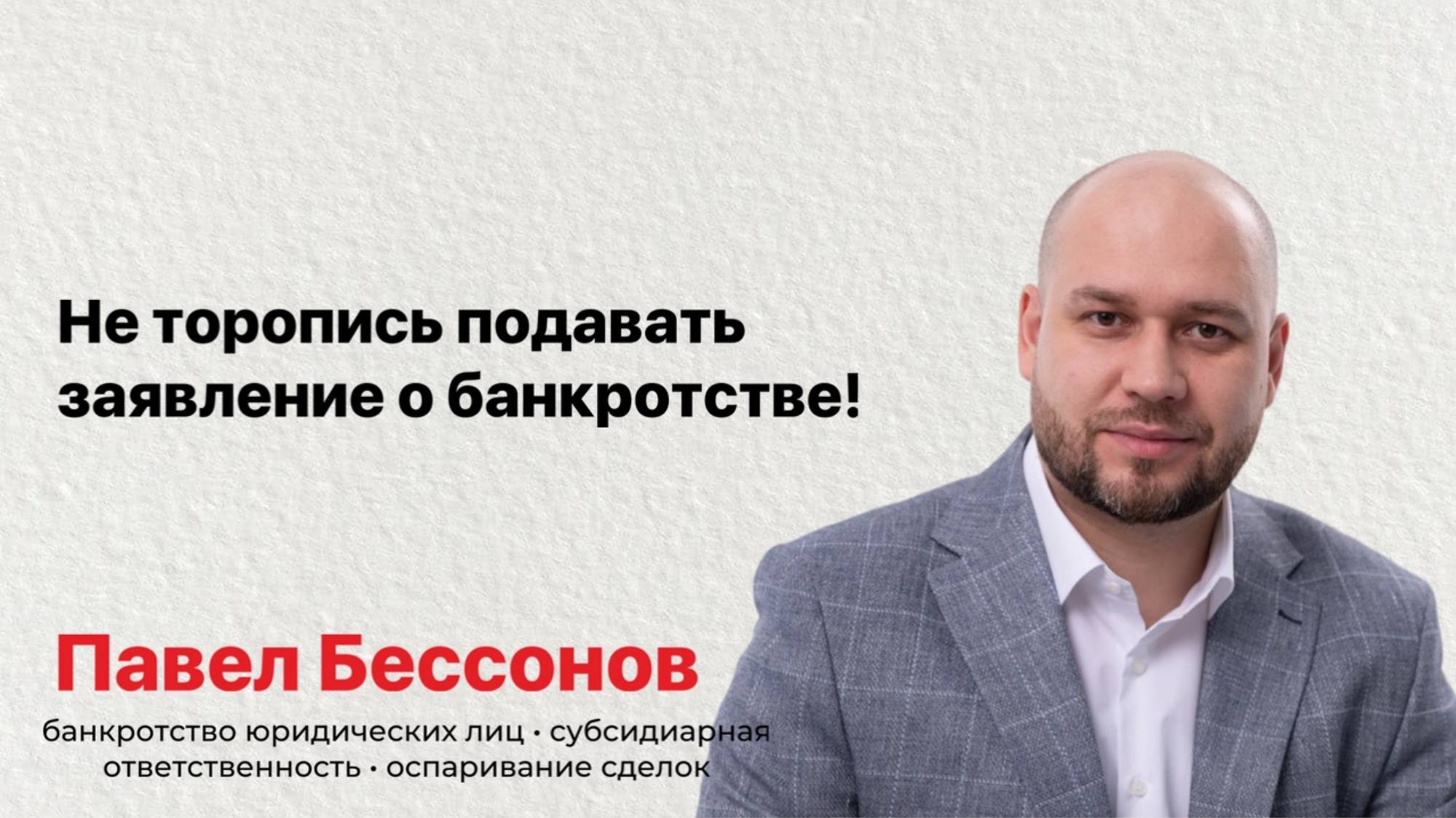 Кому не следует торопиться с подачей заявления о собственном банкротстве: 1) Те у кого в последние 3 года был вывод значимых активов; 2) Если собственник в последние 3 года входил в состав органов управления организацией, был директором или акционером, участником; 3) Если в компании бардак с бухгалтерским учетом, отсутствует полностью или частично первичная документация; 4) Если на балансе организации есть недостача имущества. Юридическая фирма BESSONOV GROUP Павел Бессонов 8-977-702-75-79 www.bessonov.group Звоните прямо сейчас, отвечу на все ваши вопросы!