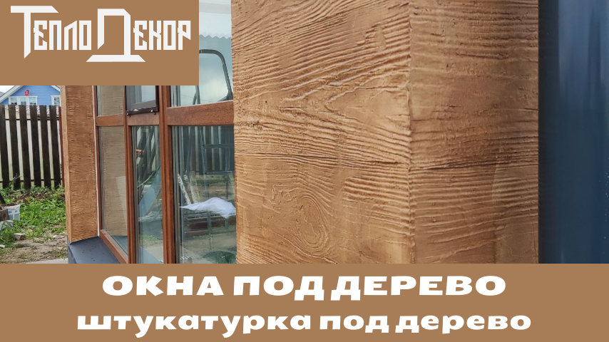 Окна под дерево, серые отливы, серая крыша, сочетаем с штукатуркой под дерево.
