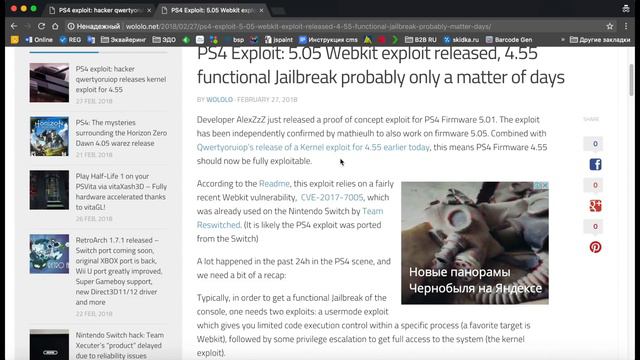 Вы сможете установить взлом (джейлбрейк) на прошивках вплоть до 4.55 уже в самое ближайшее время, так как опубликовано два, необходимых для этого эксплоита. Первый эксплоит - режима ядра, работает до 4.55 включительно : http://wololo.net/2018/02/27/ps4-exploit-hacker-qwertyoruiop-releases-kernel-exploit-4-55/ Второй эксплоит режима пользователя, работает до 5.05 включительно (а может быть и выше!), но без эксплоита ядра практически бесполезен: http://wololo.net/2018/02/27/ps4-exploit-5-05-webkit-exploit-released-4-55-functional-jailbreak-probably-matter-days/ Наш сайт: ps4jail.pro