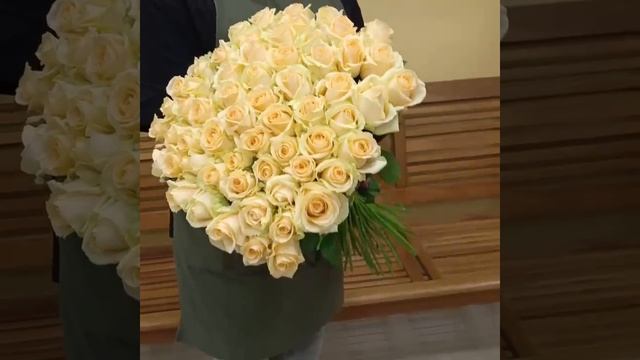 Букет из 61 кремовой розы Пич Аваланж 60 см "Кремовый рай"
