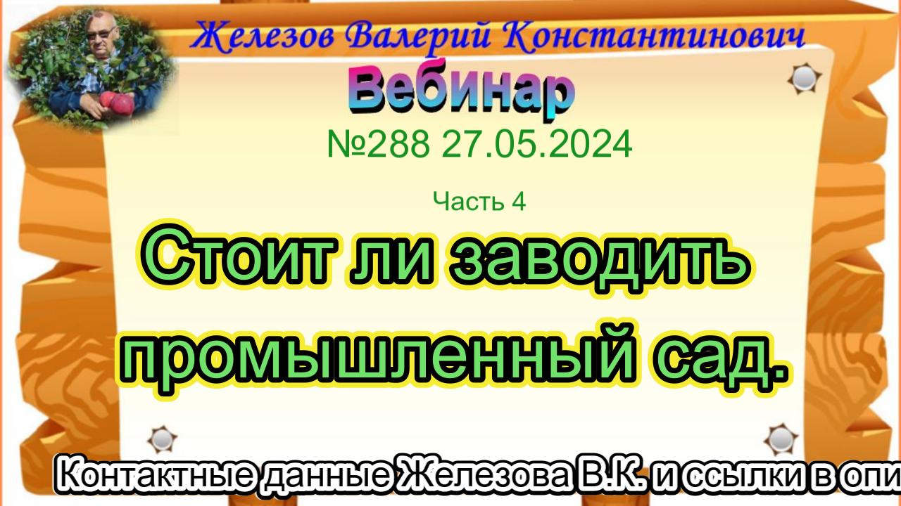 Железов Валерий. Вебинар 289. ч. 4. Стоит ли заводить промышленный сад.