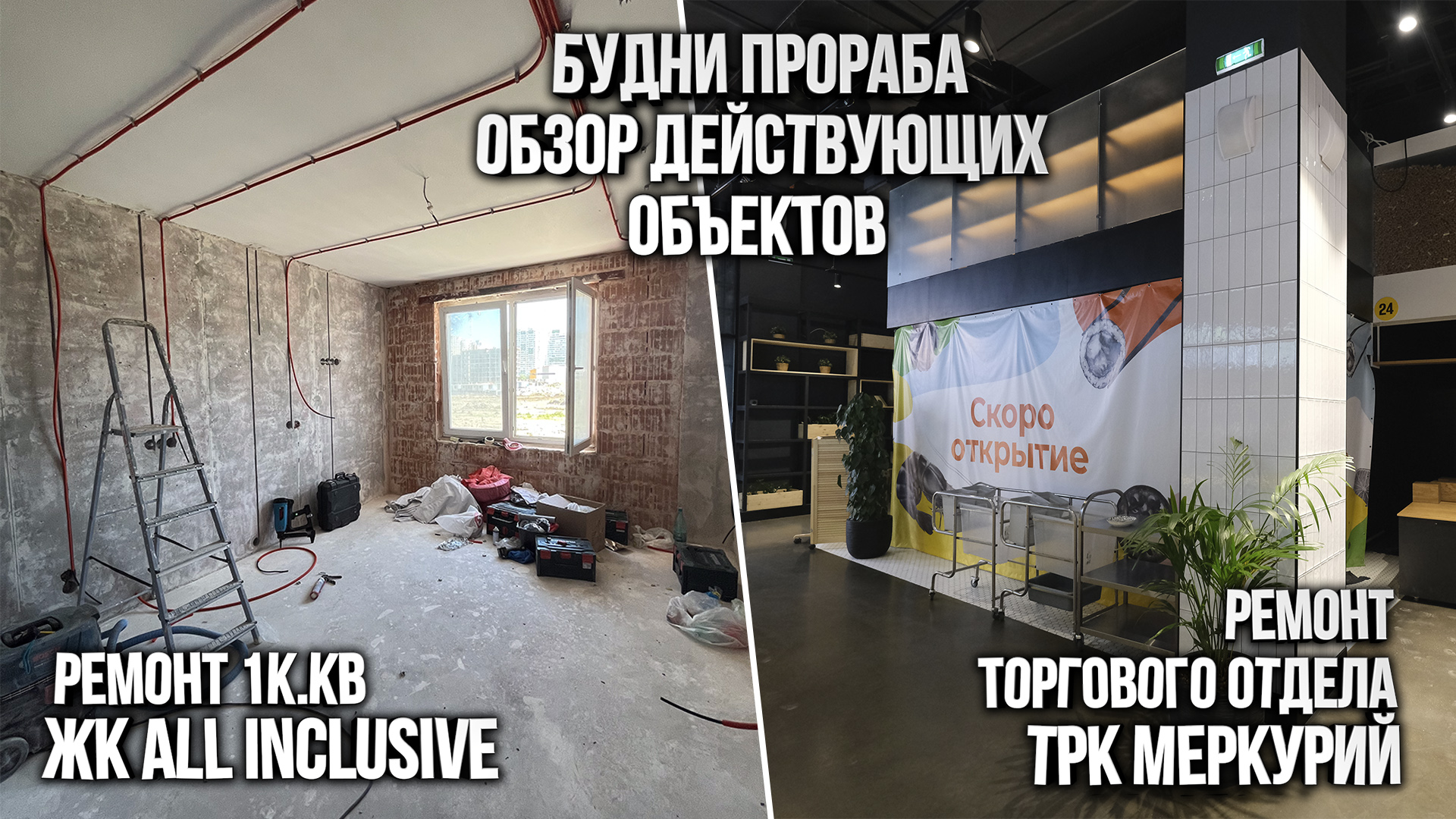 Всем привет! ✌️ Сегодня покажем текущий процесс работ на наших объектах в ТРК Меркурий и в ЖК All Inclusive. Приятного просмотра! Подписывайтесь на канал, чтобы не пропустить следующее видео по этому и новым объектам ! ?? –––––––––––––––––––––––––––––––––––––––––––– "Кликни Ремонт" - ремонт квартир, загородных домов, коммерческих помещений. Помощь в приемке квартиры. Индивидуальный подход к каждому клиенту. Мы думаем о качестве, и воплощаем его в рамках ВАШЕГО БЮДЖЕТА. Заявки на ремонт квартир и помещений по тел.: (812) 385-77-22, (812) 998-01-78 Пн-Пт: с 10.00 до 19.00 Наши соц. сети: E-mail info@klik-remont.ru Сайт http://klik-remont.ru/ Instagram https://www.instagram.com/klik_remont Группа ВК https://vk.com/klikremont Rutube.ru https://rutube.ru/channel/23612959/ Телеграмм https://t.me/klikremont Youtube https://www.youtube.com/c/КликниРемонт #ремонтторговойточки#жкallinclusive#ремонтквартир –––––––––––––––––––––––––––––––––––––––––––– In Time (Instrumental) by Dylan Emmet https://soundcloud.com/dylanemmet Creative Commons — Attribution 3.0 Unported — CC BY 3.0 Free Download / Stream: https://bit.ly/in-time-instrumental Music promoted by Audio Library https://youtu.be/AzYoVrMLa1Q